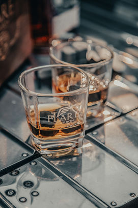 The Flare Bourbon glass set is an ideal addition to your hangar bar or the perfect gift for any whiskey enthusiast. It includes two custom Flare Bourbon glasses, each one featuring an etched Flare logo. To keep drinks chilled without dilution, the set comes with eight whiskey stones, along with a small fabric bag for easy storage. Everything is neatly housed in a burnt / laser engraved wooden box, beautifully finished and branded with the Flare Bourbon logo, making it as much a display piece as it is a functional set.